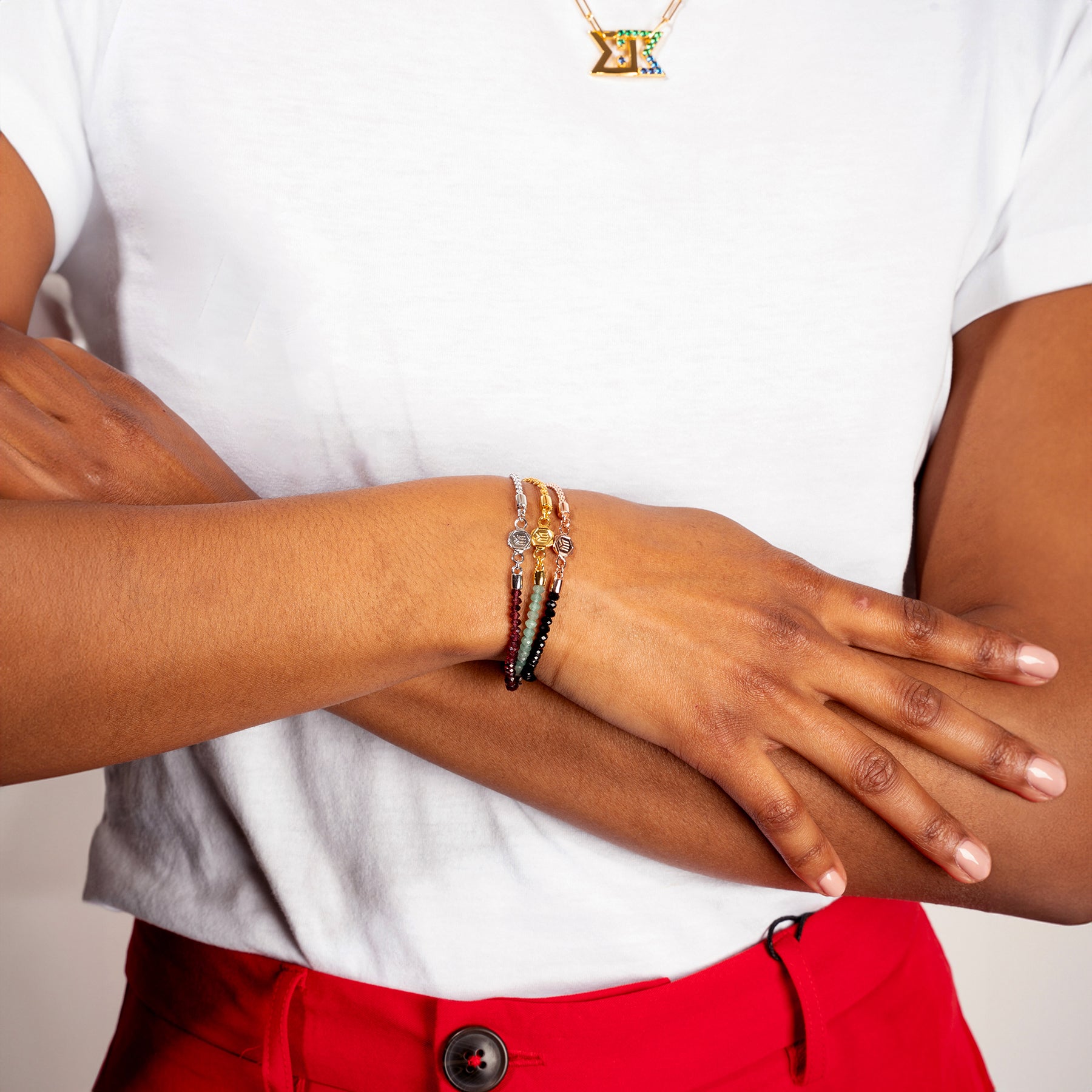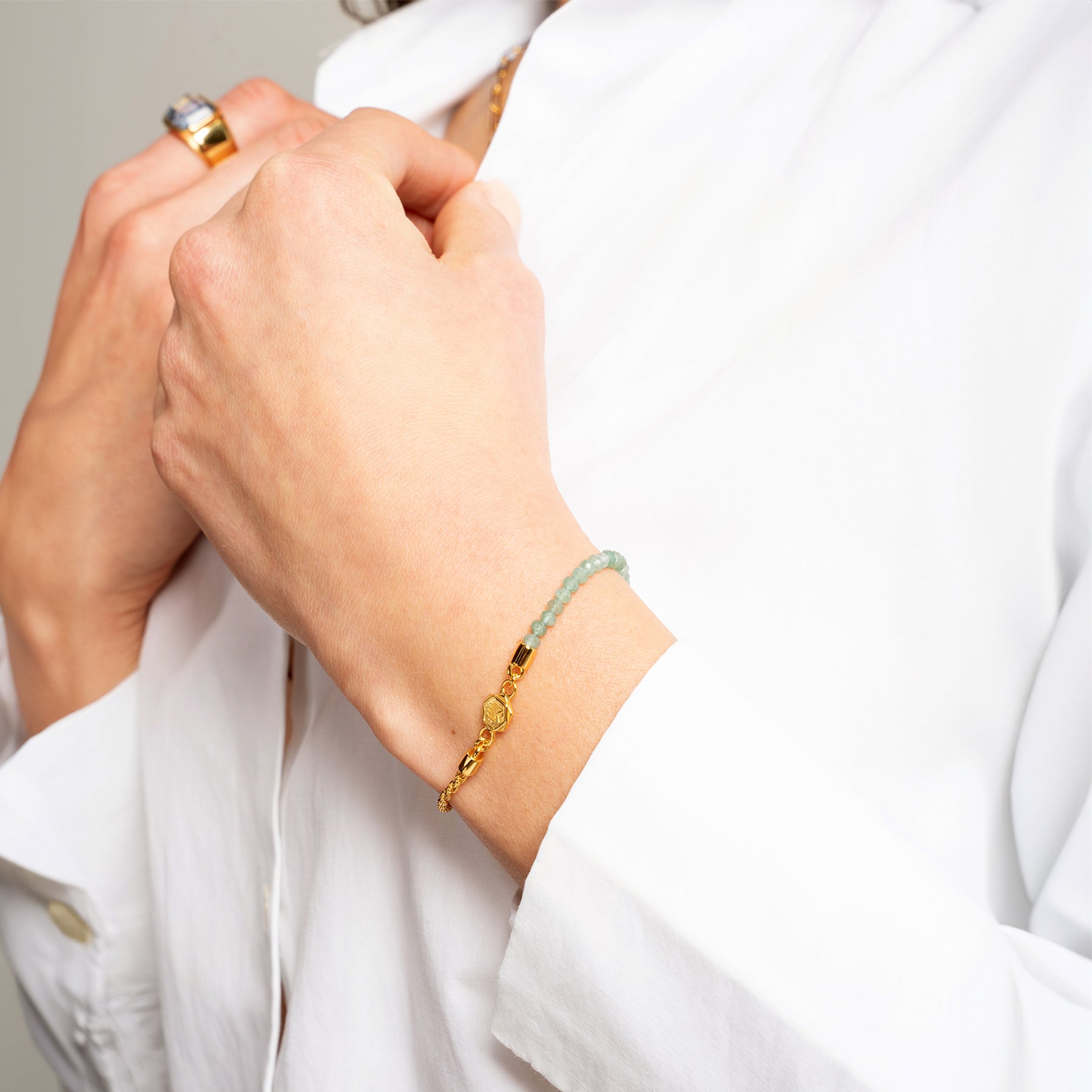 A symbol of renewal and balance. The My Muse Green Aventurine Bracelet is designed with a vibrant green aventurine stone, set on a sterling silver base with 2-micron yellow gold plating. Sleek, sophisticated, and perfect for layering, it’s a timeless addition to any jewellery collection.
